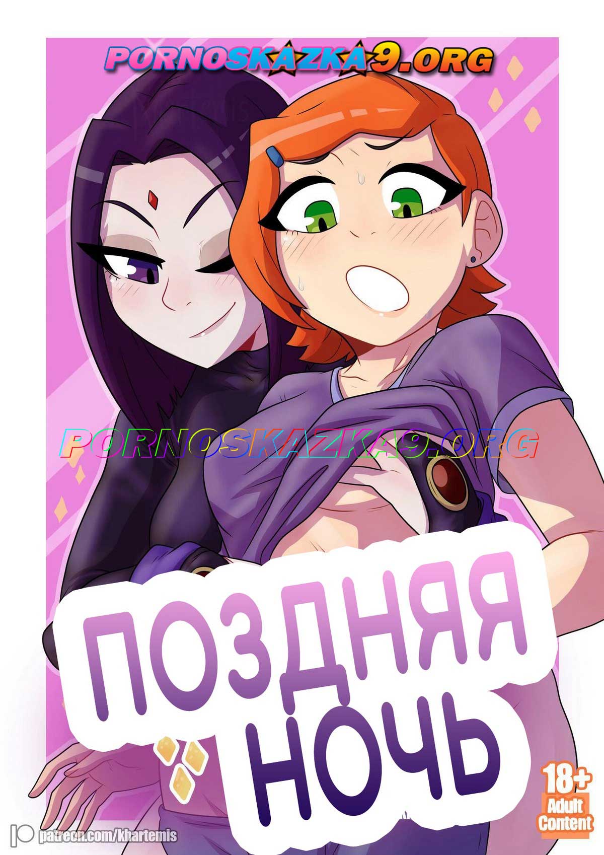 Порно комикс «Поздняя ночь.» Поздней ночью Рейвен разбудила Гвен, ради того, чтобы она отлизала её сладкую пиздёнку, но что-то пошло не так, и они решили устроить «ножницы»…